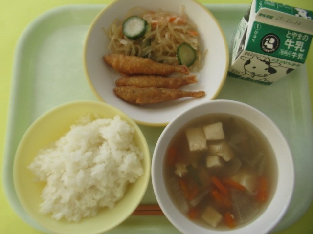 7日(金)今日の献立 公開日 2025/11/07 更新日 2025/11/07 給食室 ・ごはん ・牛乳 ・わかさぎのフリッター・バンサンスー ・サムゲタンスープ※12時、検食終了。 今日のメニューは「東アジア風献立」といえばいいでしょうか。「バンサンスー」は中華料理の和え物、「サンゲタン(参鶏湯)スープ」は韓国料理の薬膳スープ、とのことです。