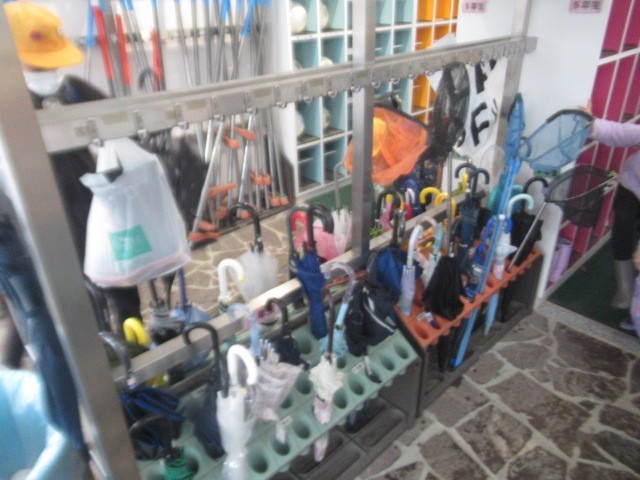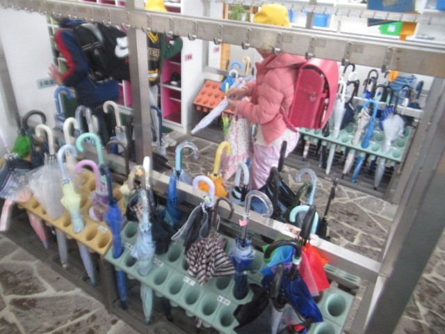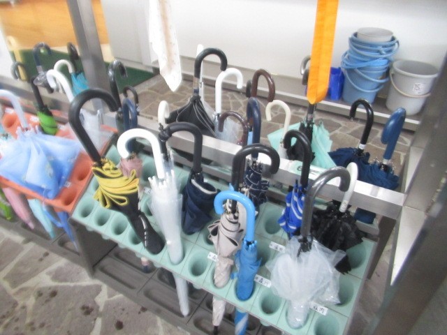 玄関に到着後、傘の水滴を落とし、クルクル巻いてから傘立てへ・・・マナーがいいですね(笑顔)