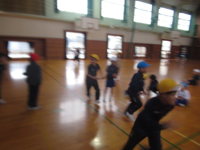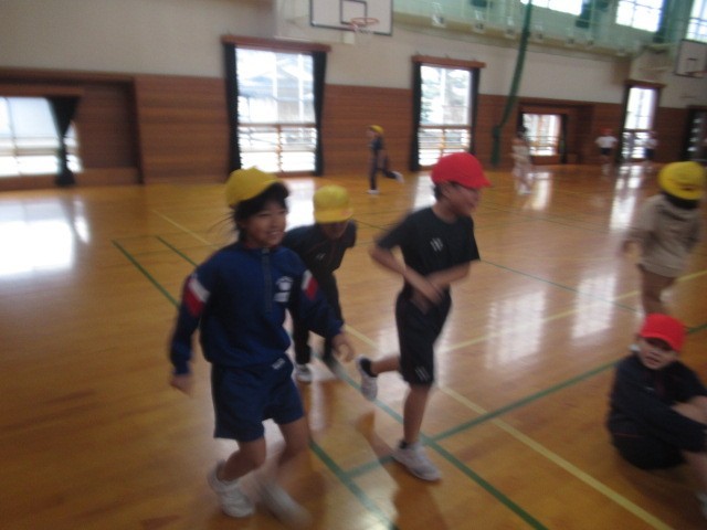 授業が始まったところです。まず、ぐるぐる走って体を温めます・・・