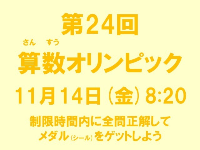 〔お知らせ〕 公開日 2025/11/11 更新日 2025/11/11 お知らせ 〔1年〕ひき算① 〔2年〕かけ算九九(7の段まで) 〔3年以上〕わり算九九 かなりメダル(シール)がたまってきているようですね。今週もゲットしましょう!