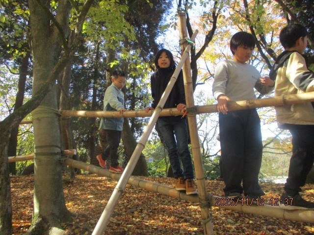 竹でできた遊具で体を動かしました。遊具の順番を守り、ゆずり合いながら気持ちよく使用することができました。
