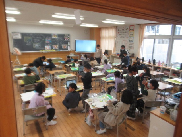 1年生は、算数科(繰り上がりのある足し算)、2年生は、図工科(紙版画)をがんばっています・・・