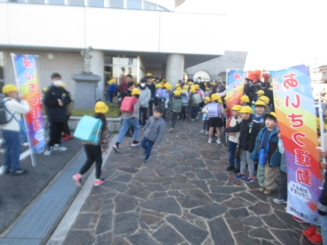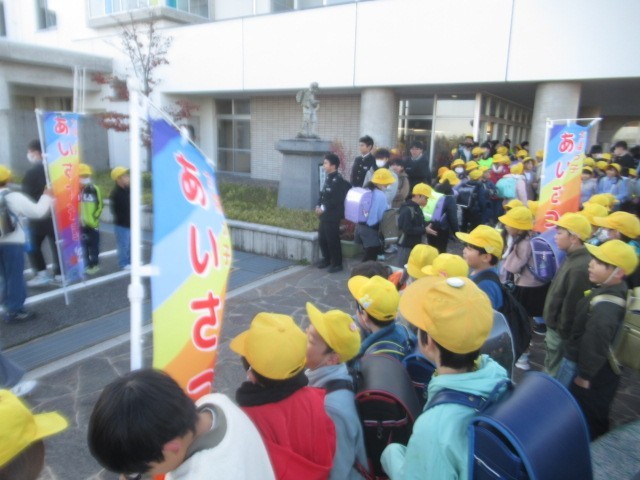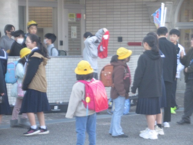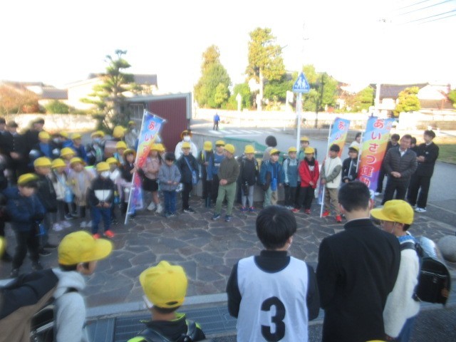 毎年春と秋に行っている「三成小・中合同 さわやか(あいさつ)運動」。今回もたくさんの子供たちが参加し、前庭は大賑わいです!