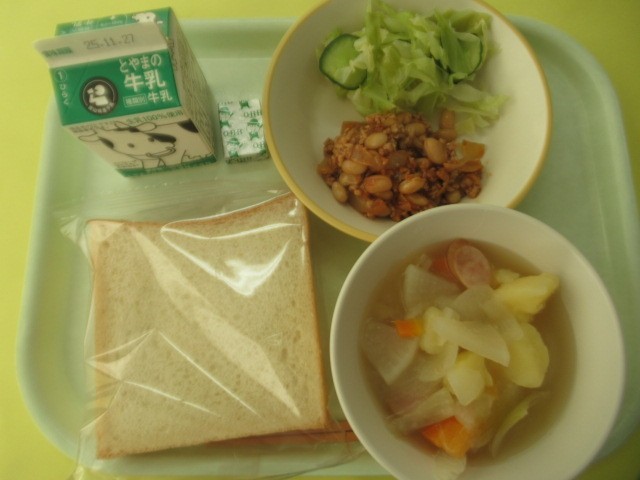 ※11時50分、検食終了。毎週木曜日は「パン食」の日です。