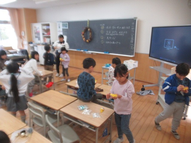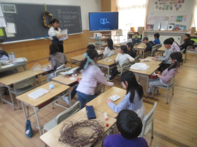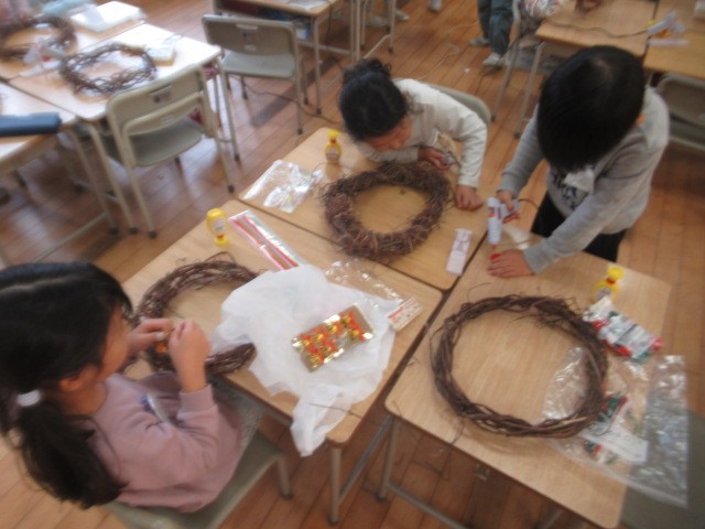 2年生の、サツマイモのつるを使って・・・リース作りがスタート!