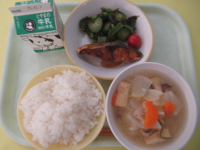 ・とろろ昆布和え ・ミニトマト ・とやまの野菜たっぷりみそ汁
