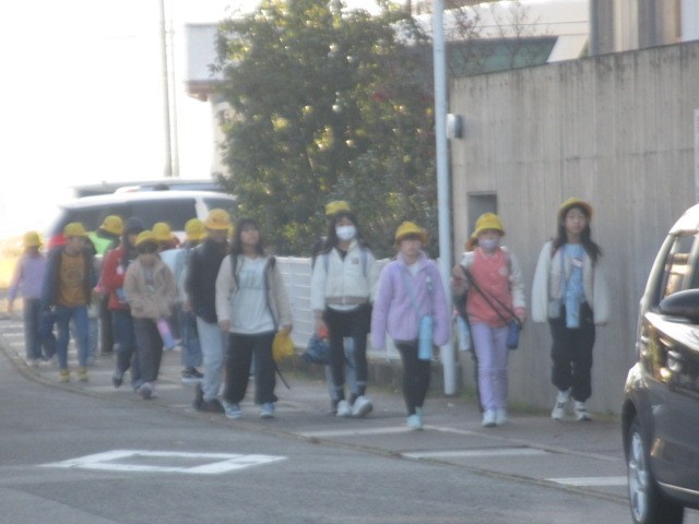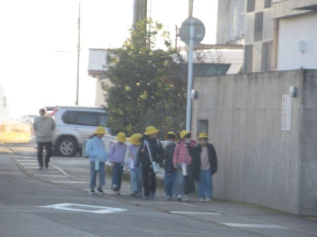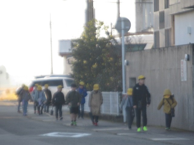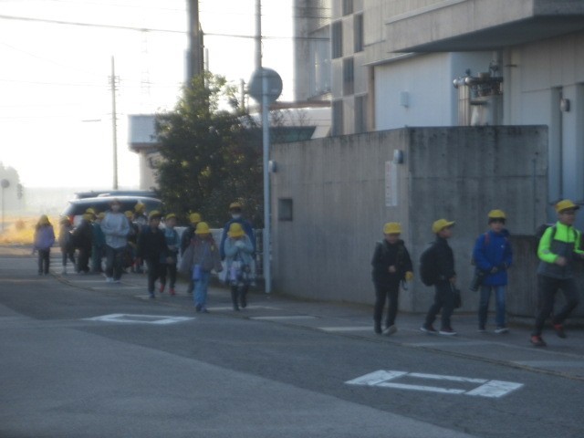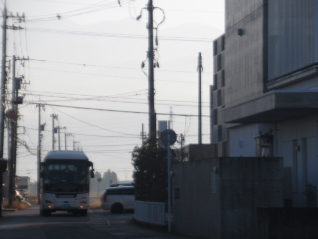 朝日を浴びながら・・・定刻より数分遅れましたが、無事に到着しました。がんばって登校しています・・・