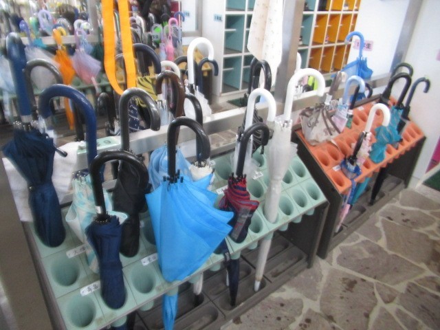 使った傘は、クルクル巻いて・・・あるのが多いです(笑顔) 傘を巻く時、手が濡れて冷たくなるのですが・・・