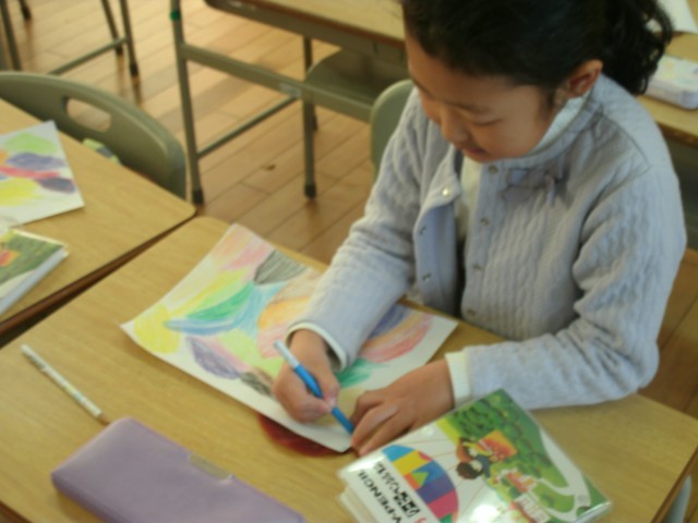 学校のグラウンドや遠足で拾ってきた葉やどんぐりを使って、作品づくりや遊びを楽しみました。紙の下に葉を重ねてこすって模様を浮かび上がらせたり、どんぐりごまを作って友達と回しやすさを競ったりして、秋ならではの活動に熱中していました。