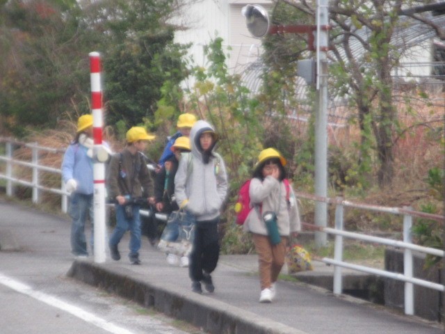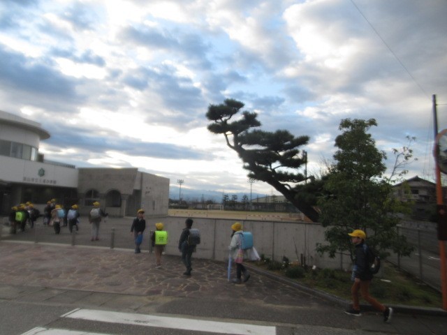 曇り空・・・冷え込みは、ありません。元気に登校しています・・・