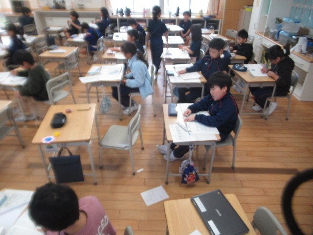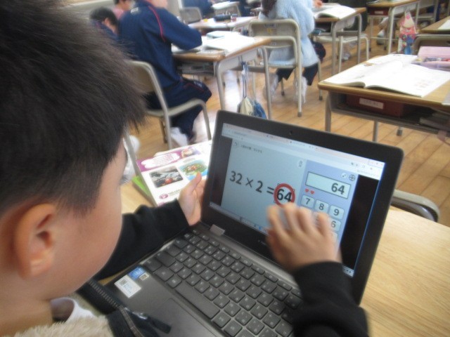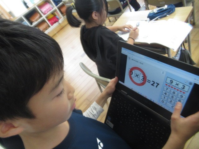 教科書やドリルの課題を次々クリア・・・すべて終わった子は、PCのドリルにチャレンジ!