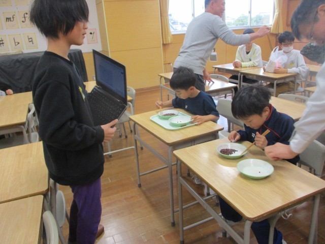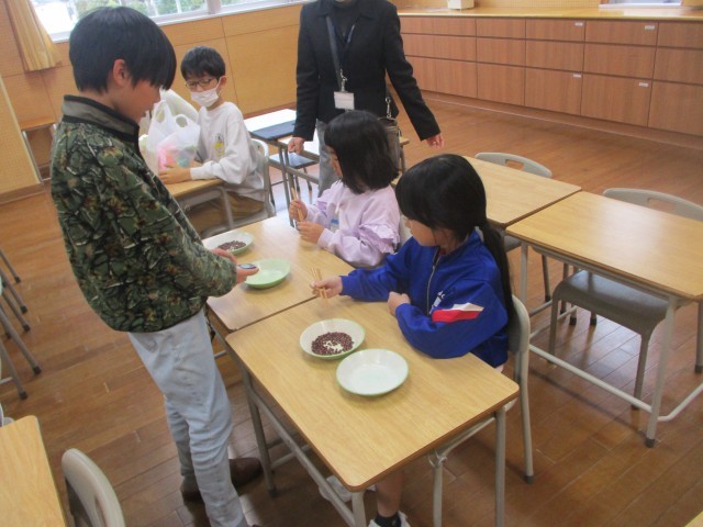 今日から給食委員会主催企画「あずきつまみ大会」が始まりました。