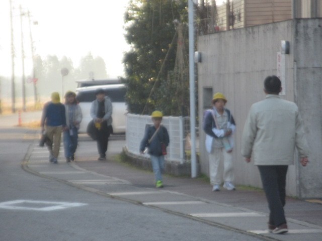 定刻より数分早く到着しました。元気に登校しています・・・