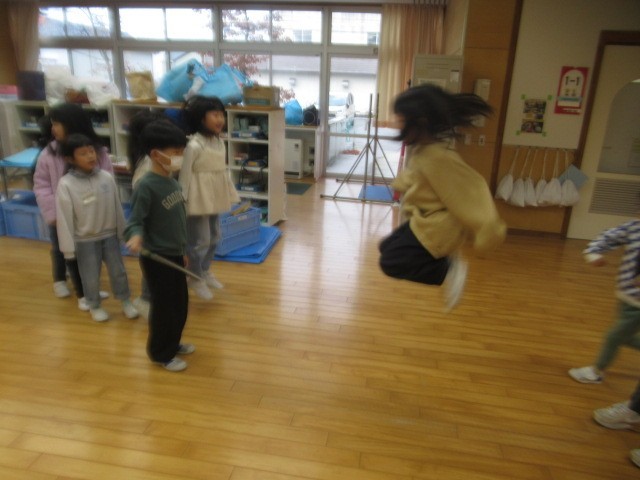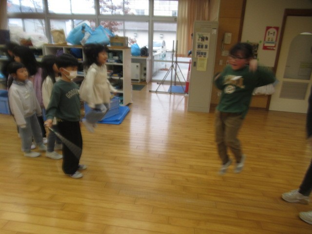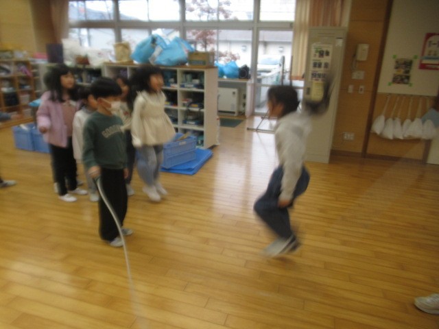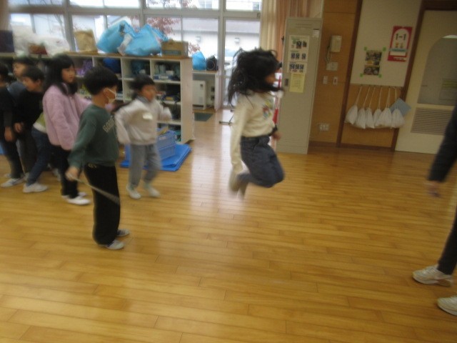 3学期にある大会に向けて「8の字跳び」の練習です。大縄に引っかからずに跳べる子が増えています・・・