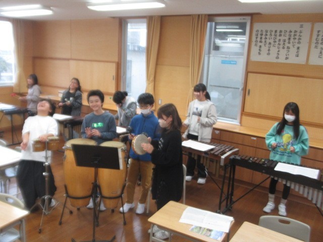 合奏の練習中・・・フレーズの合間に、楽しそうな笑い声が上がります(笑顔)