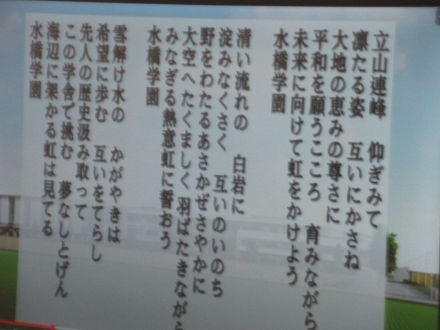 今月の練習曲は・・・「♪水橋学園・校歌」です! すでに「ほぼ歌える」という学年もあるようです(笑顔)。