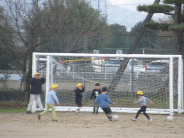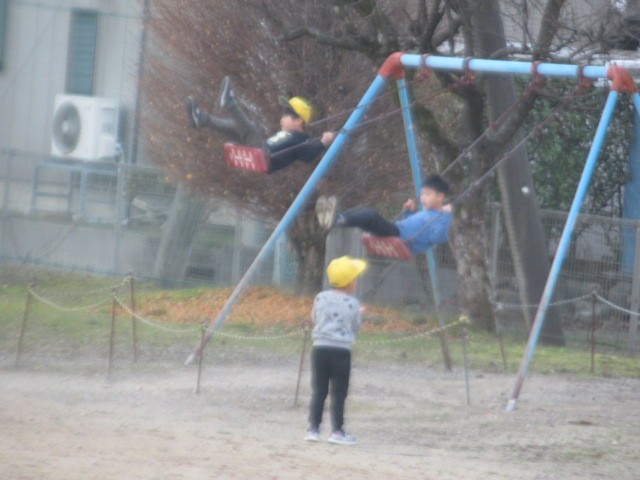 わずかな晴れ間を逃さず、グラウンドへ! 元気です(笑顔)