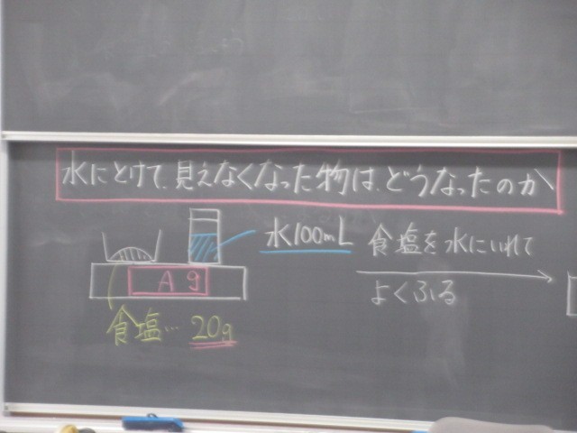 「物のとけ方」の学習です。水にとけた「食塩」は、どうなった? どこへいった?