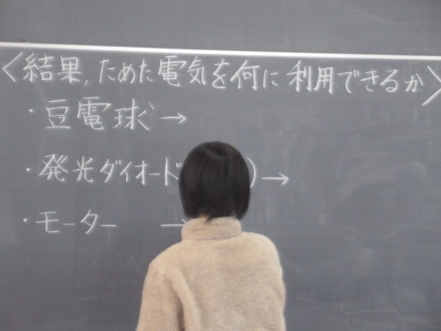子供たちは「電気をつくる」「電気をためる」「電気を利用する」という学習をしています。さて、「電気」は、何に利用できるでしょうか? 問い方を変えると・・・「電気」(目に見えない)は、その姿を変えて「何」になるでしょうか?