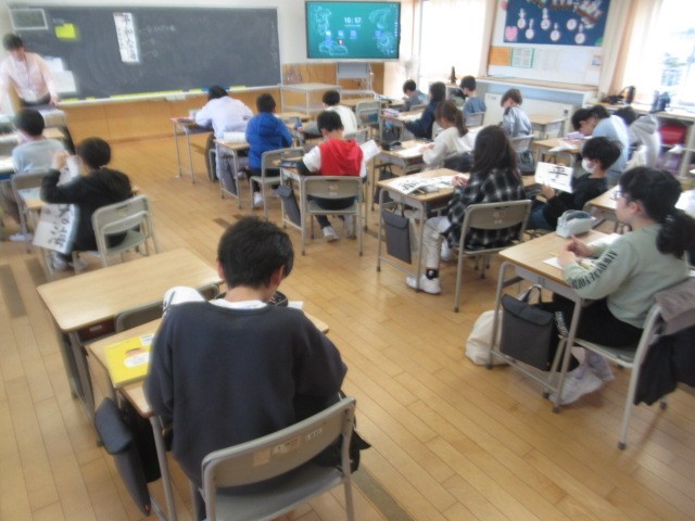 書初練習を始めるようです。4等分して折り目を入れたり・・・まずは「お手本」の準備から。