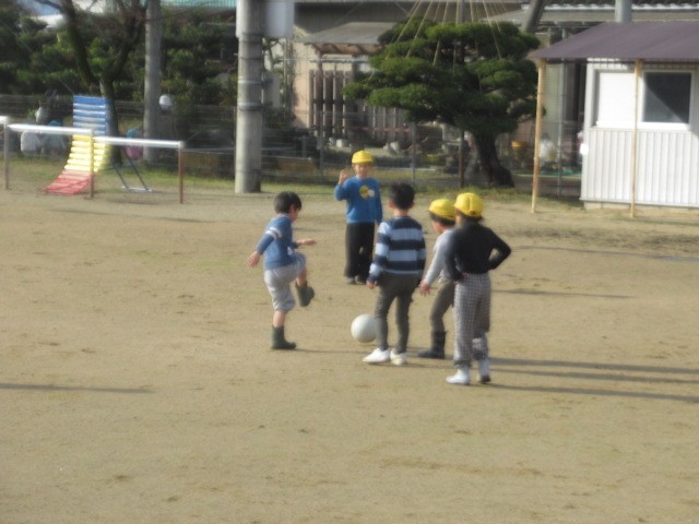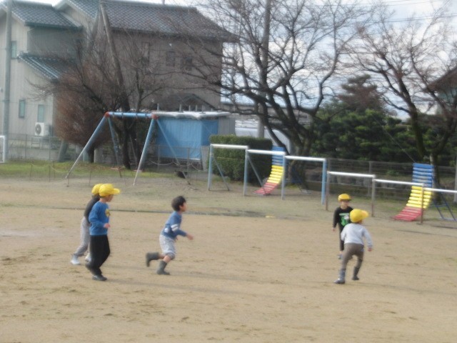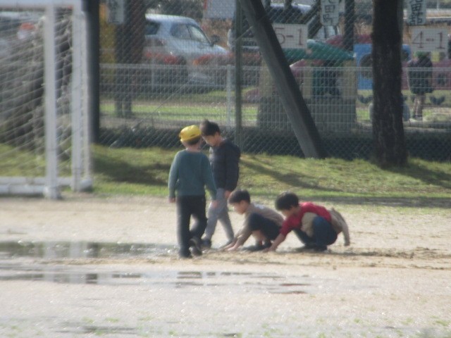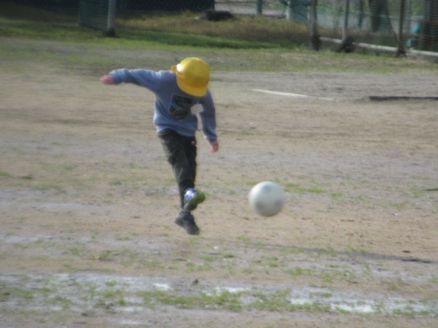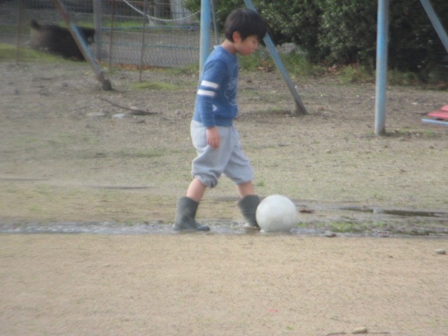 グラウンドで遊ぶ子がいます。どろんこサッカー! 元気です! ・・・洗濯、お願いします(苦笑)