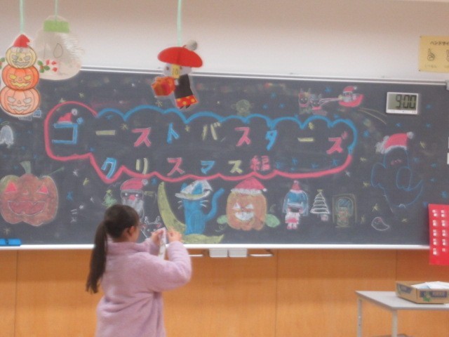 朝の会から興奮気味(笑顔)、あっという間に教室がイベント会場になりました・・・