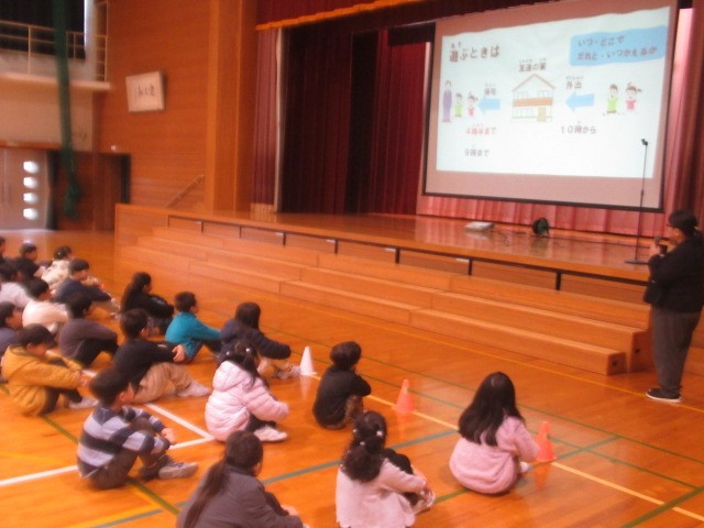 冬休みを “安全に” “楽しく” 過ごすために、生徒指導主事が「ゲーム・ネット利用」「交通安全」「火事」「雪・雪道」「外出・帰宅時刻」などについて確認しました。