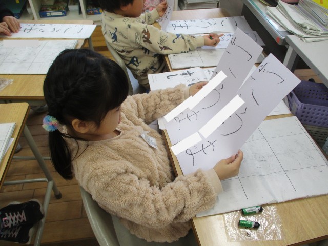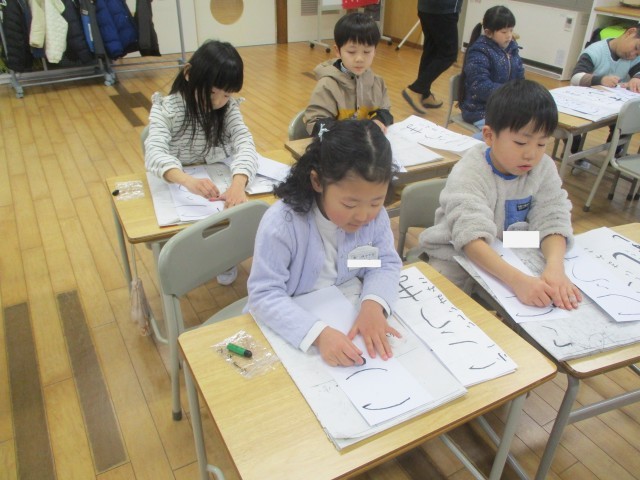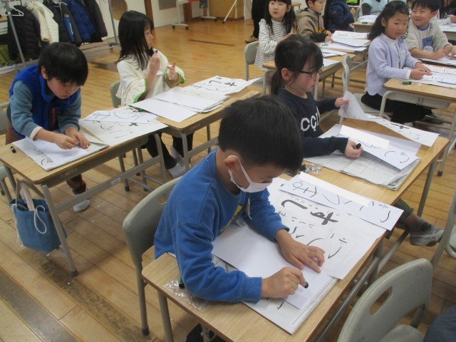 初めての書初大会でした。「冬休みに練習したことを発揮したい」「力強く大きな字を書きたい」と目当てをもって取り組みました。一文字一文字を丁寧に、集中して書くことができました。
