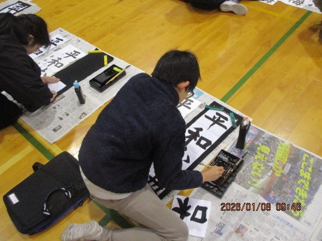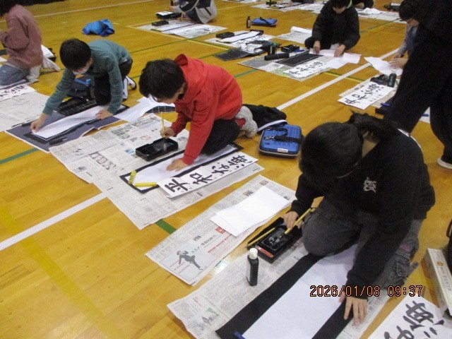 さて、新しい年が始まって、心も新たに子供たちは書初めに臨みました。