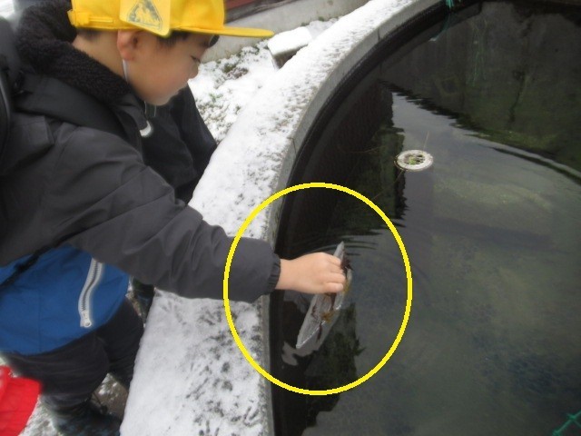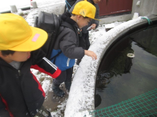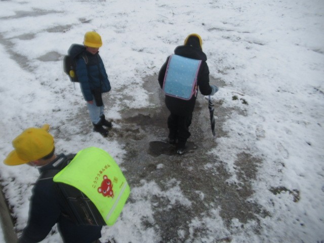 氷を踏んで厚みを確かめたり、「氷は、水に 浮くの? 沈むの?」と実験したり・・・