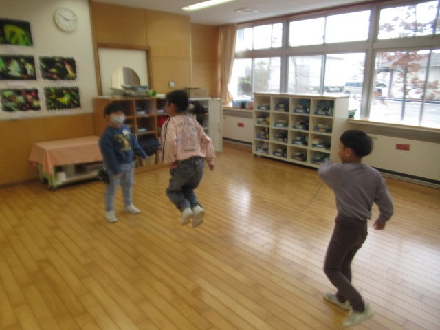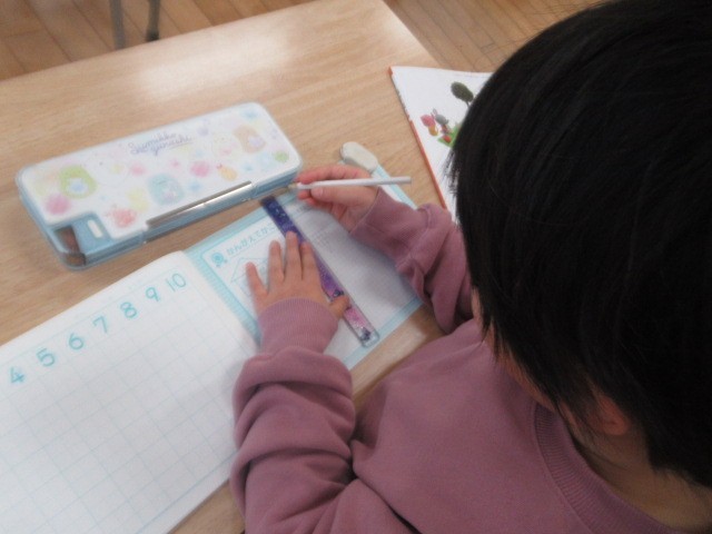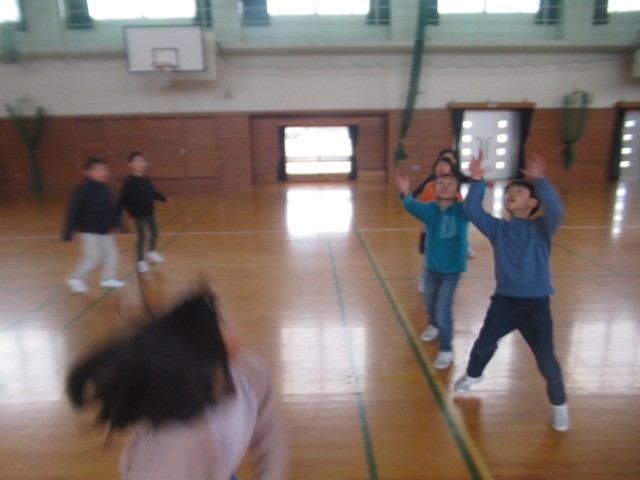教室で「いす取りゲーム」をしたり、縄跳びをしたり。体育館では、ドッジボール。鉛筆と物差しで、おもしろい図形? 模様? を書いている子も・・・
