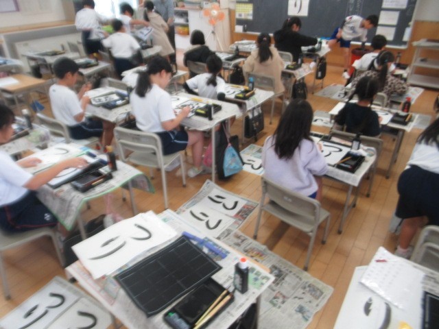 毛筆による「書初大会」も経験し、筆遣いにも慣れて? きました・・・
