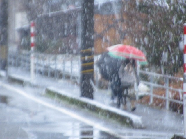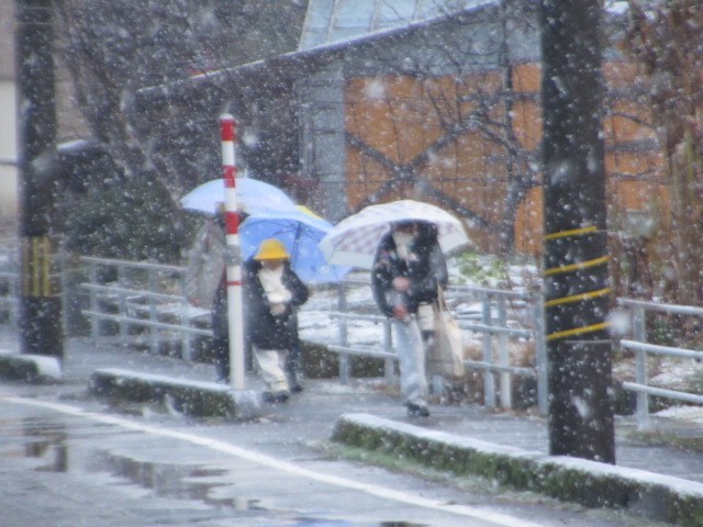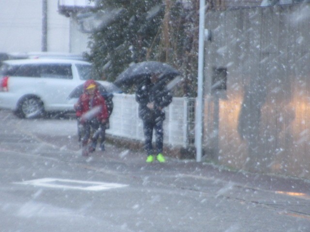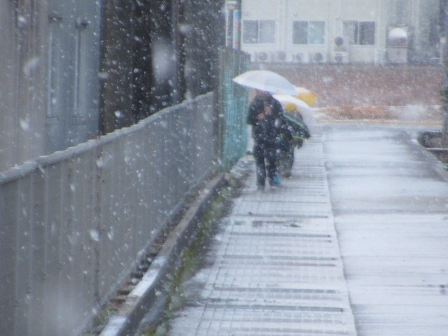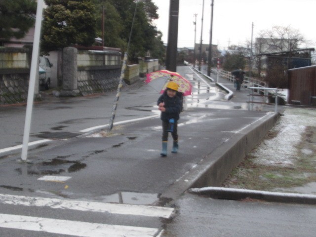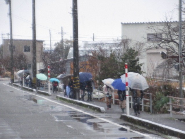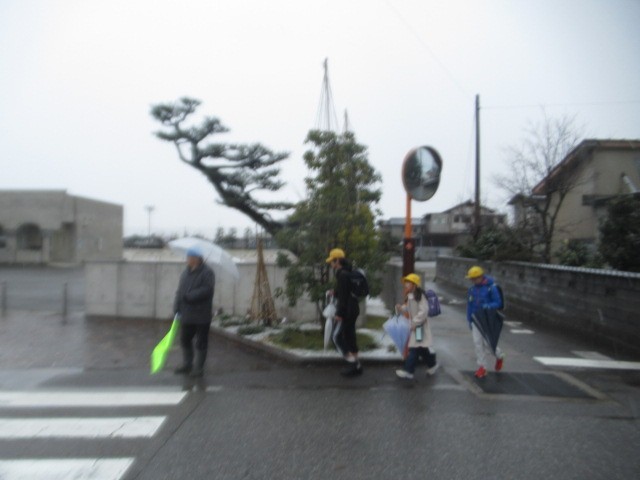 吹雪の中の登校となりました。寒い中、がんばって登校しています・・・