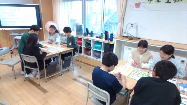 今日は、ゲストティーチャーをお招きして、SDGsについて楽しく学べるカードゲーム体験をしました。資源を使ってアイテムを作り、最後にアイテムの合計点数を競うゲームです。1回戦目は、個人で好きなだけ資源を取っていくルールでした。すると、あっという間に盤上の資源がなくなりました。2回戦目は、限りある資源をうまく利用しながらチームで協力してアイテムを作っていくルールでした。2回のゲームを経て、未来のために資源を残していくことの難しさや、資源をゆずり合って大切に使うことの大切さを学ぶことができました。また、「大雪」などの突然のトラブルによって資源が失われることを知りました。今日の体験を通して、持続可能な社会の実現に向けて、行動を見直すことができるとよいですね。