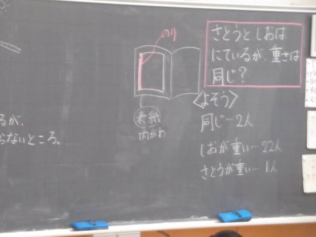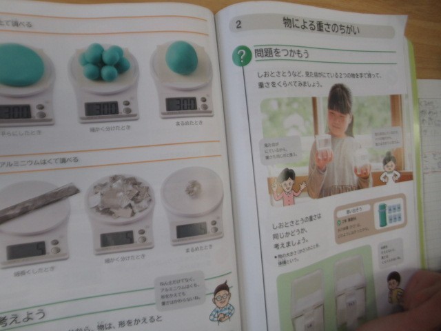 「形による重さの違い」「物による重さの違い」などを学んでいます・・・