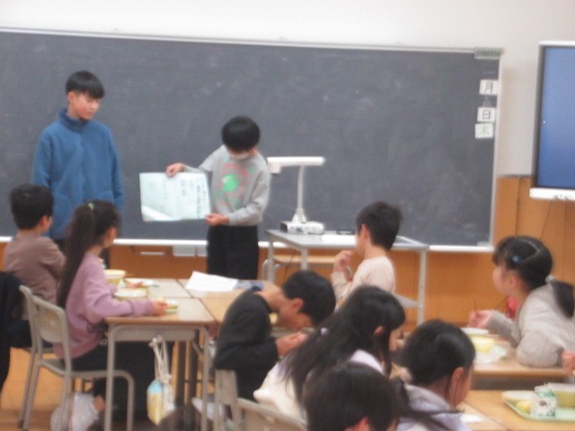素早く配膳を済ませ、委員会のお仕事(献立放送や給食集会のお知らせ など)もこなします・・・