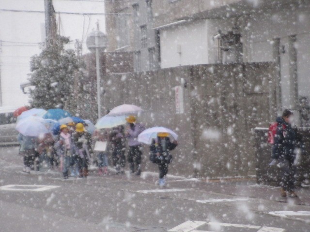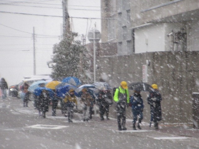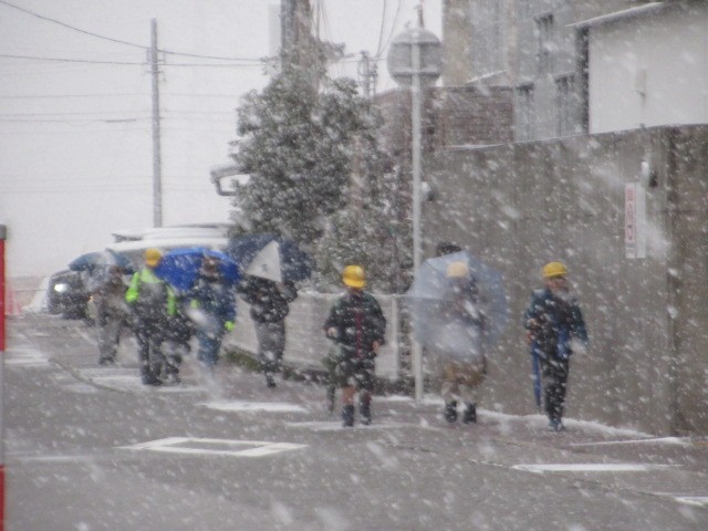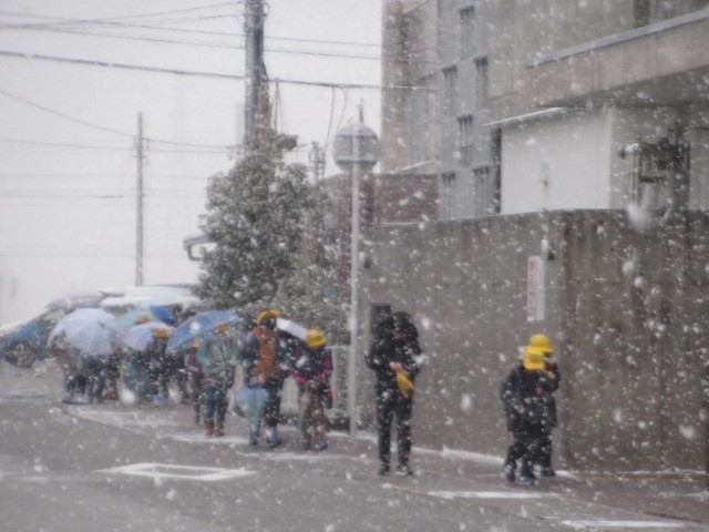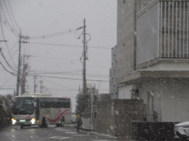 今朝は、山が全く見えません。相当吹雪いていると思われます。バスは、定刻より数分早く到着しました・・・