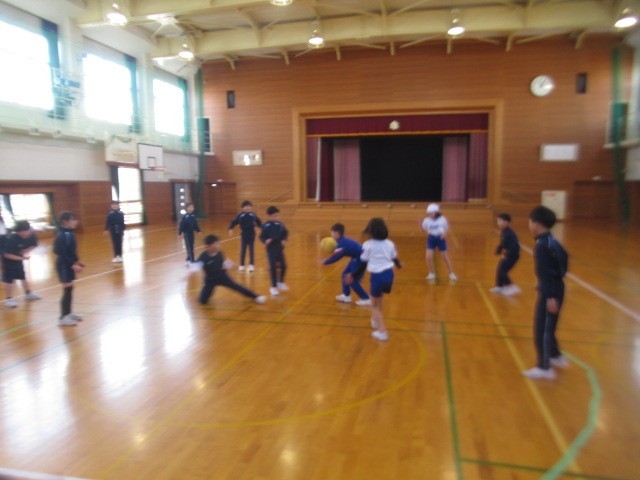 ドッジボールを楽しんでいます。10歳を超えると、投げるボールのスピードが上がったり、速いボールを上手にキャッチしたり・・・