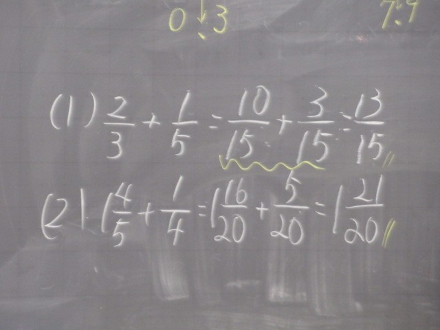 分数の「たし算」「ひき算」は、分母を同じにする(通分)ことが大切ですね。
