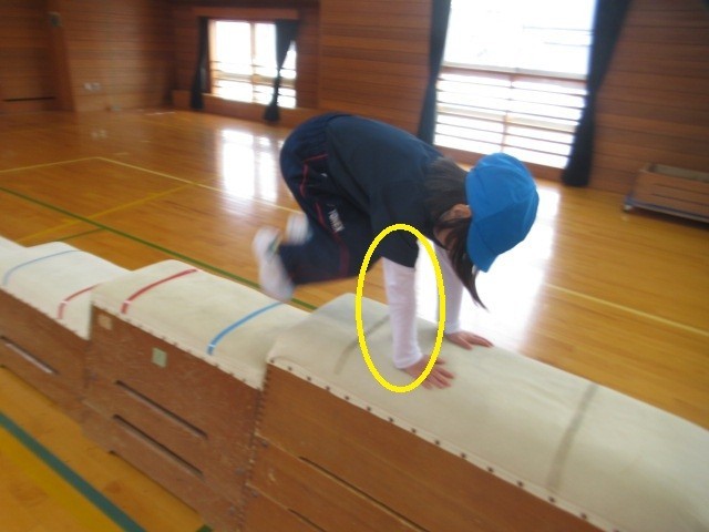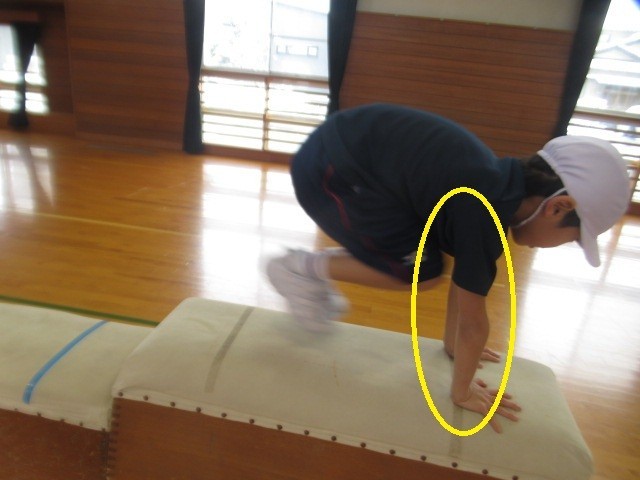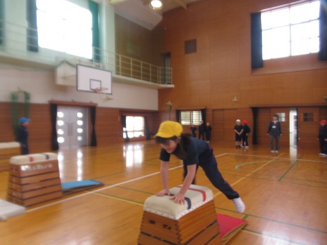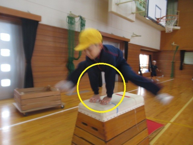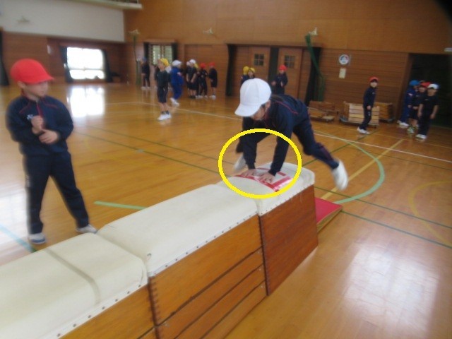 「跳び箱を使った運動遊び」をしています。遊びながら「両腕で全身を支える感覚」を身に付けていきます・・・
