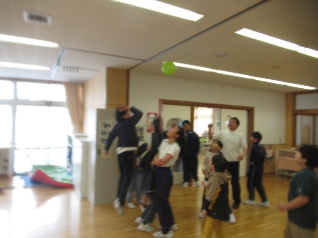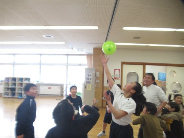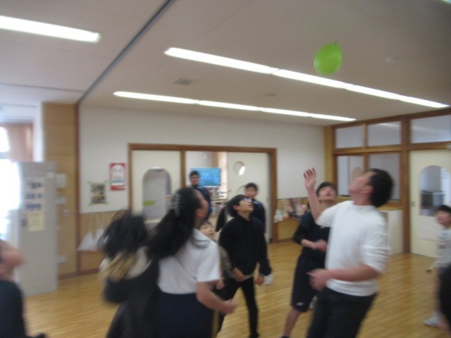 「風船パスケ?」「風船ラグビー?」・・・「教室扉の間」や「教材室の上部」のような、空いているところに風船を入れたチームが勝ち!
