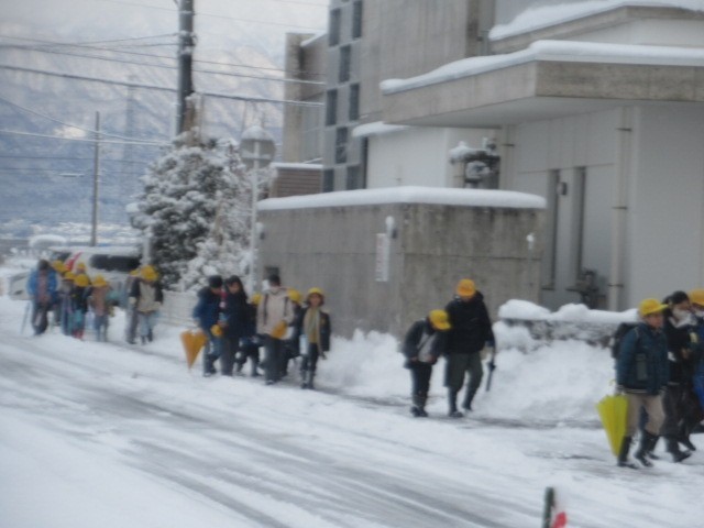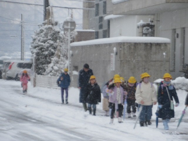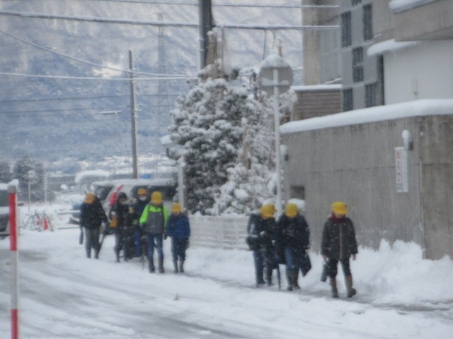 道路状況を心配しましたが、定刻に無事、到着しました。元気に登校しています・・・