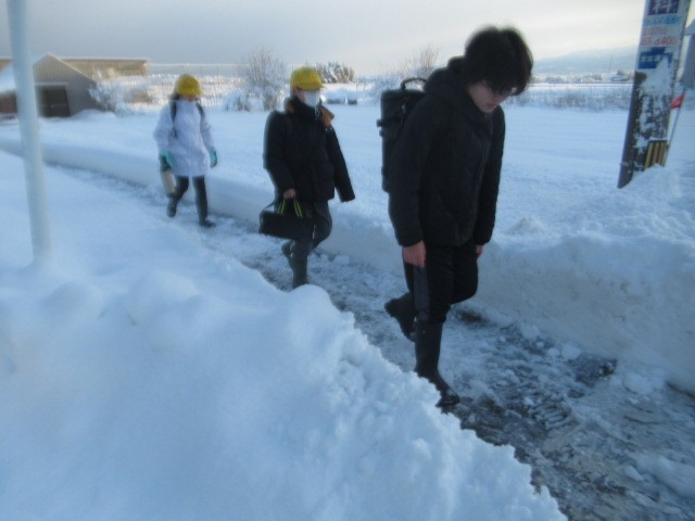 週末の降雪により、雪道(積雪約30cm)の登校となりました・・・