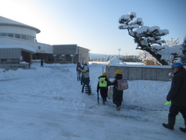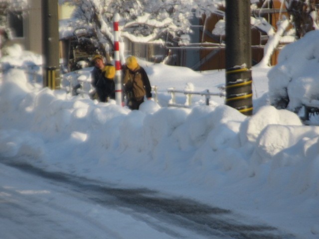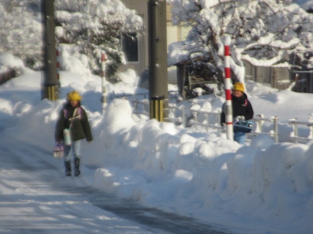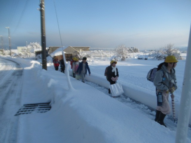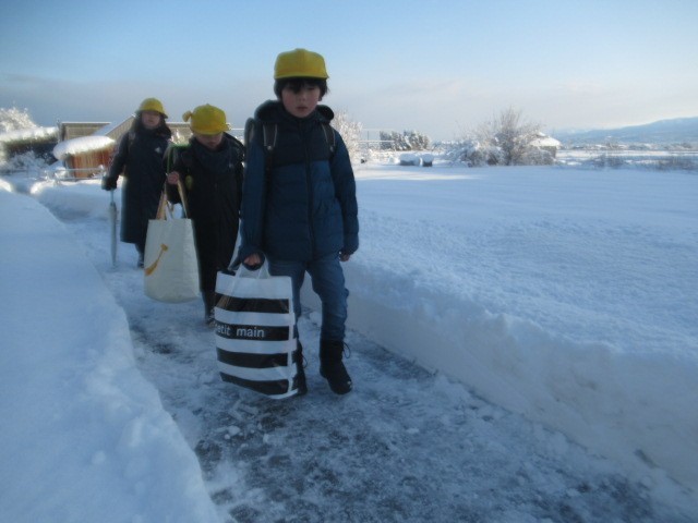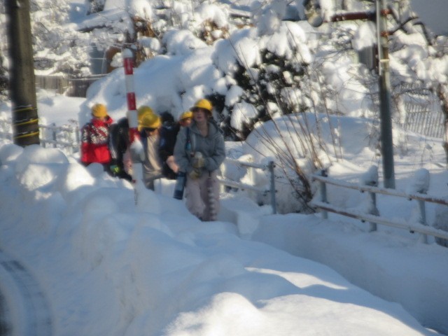 がんばって登校しています。危険なので、なるべく車道は歩かないようにしましょう・・・