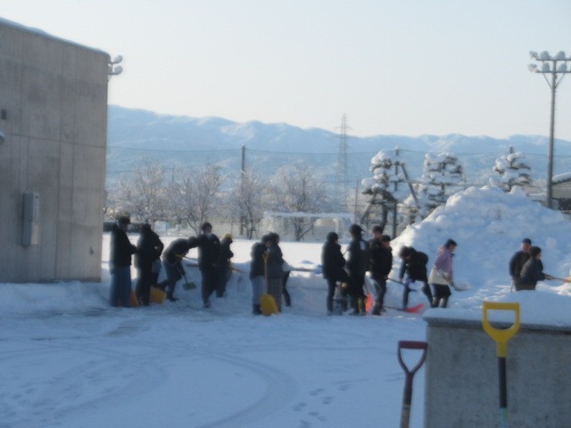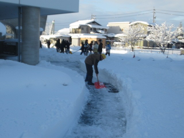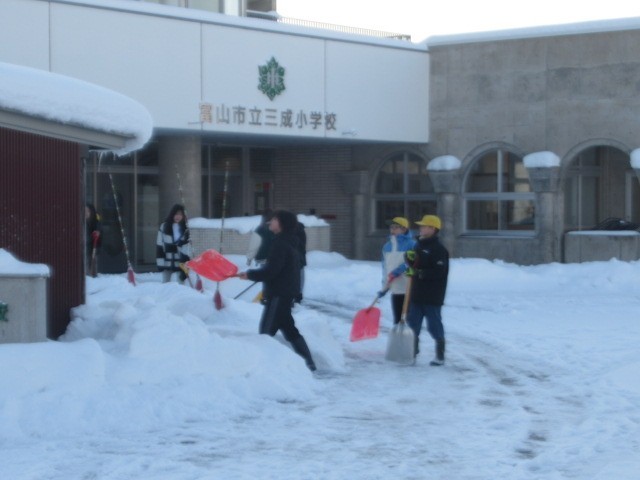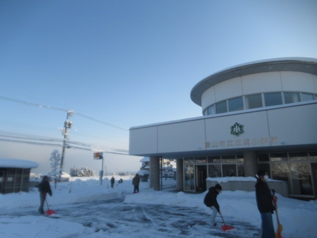 登校した6年生が、がんばって「除雪」してくれています。ありがとう!