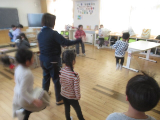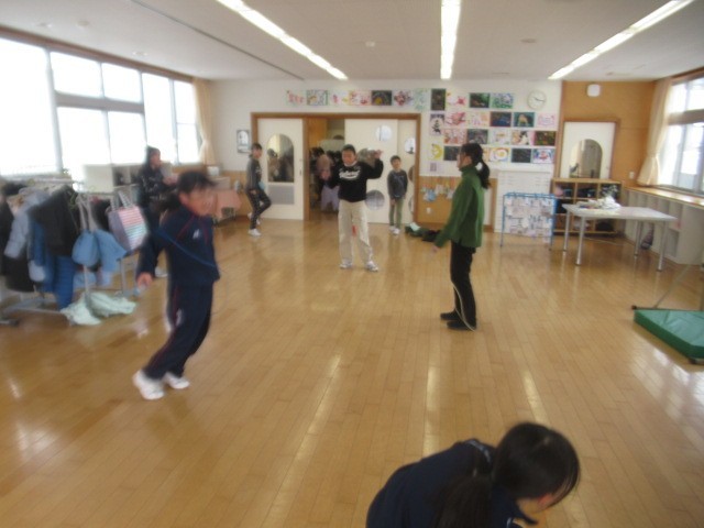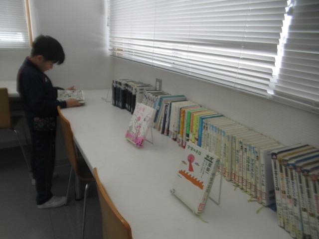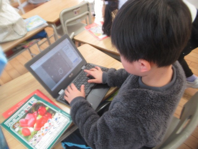 縄跳びで遊ぶ子や自分の技を磨く子、図書室横のお話の部屋で本を借りる子、タイピングの練習をする子、上級生と触れ合う下級生・・・