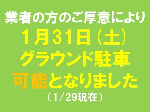 今日から明日、明後日にかけて、再び「大雪」との予報もあります。このまま、あまり積もらなければ「グラウンド駐車」可能となっています。グラウンド出入口やグラウンド内に、雪の塊や凸凹がありますので、十分注意して走行および駐車してください。