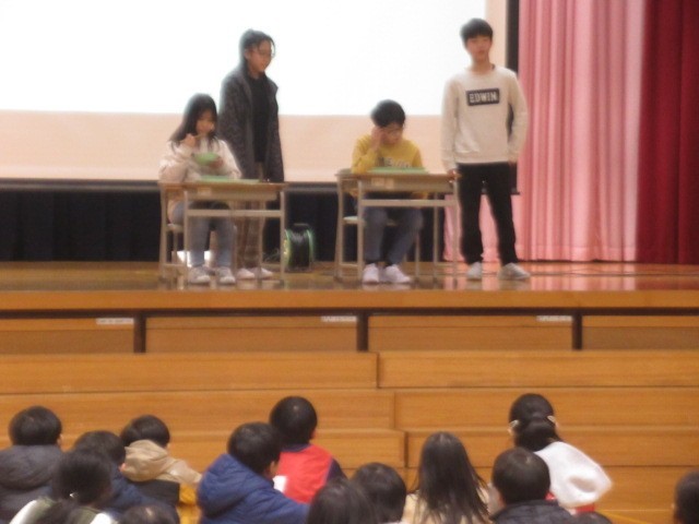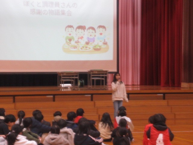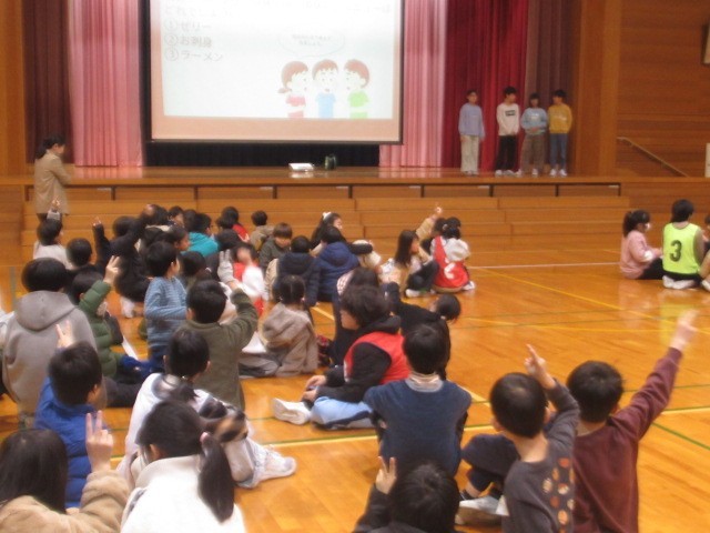 集会では、給食委員が劇やクイズをして、食事や学校給食への理解を広げてくれました・・・