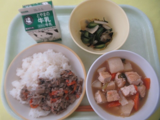 ・ごはん ・スイミー丼 ・海藻のサラダ ・大きなかぶの煮物 ・牛乳