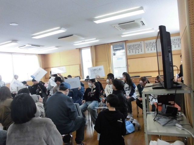三成小学校最後の学習参観は、「卒業プロジェクト」を行いました。一人一人が、これまでの学習や自分自身に関するクイズを作り、保護者の方と対戦しました。保護者の方を目の前に、クイズを解き合ったり、メッセージを伝えたりする中で、こみ上げる思いがあふれていました。卒業式を前に大切な時間となりました。